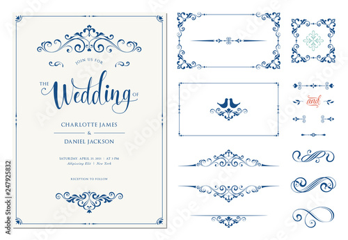 Ornate Wedding Invitation Calligraphic Vintage Elements Dividers